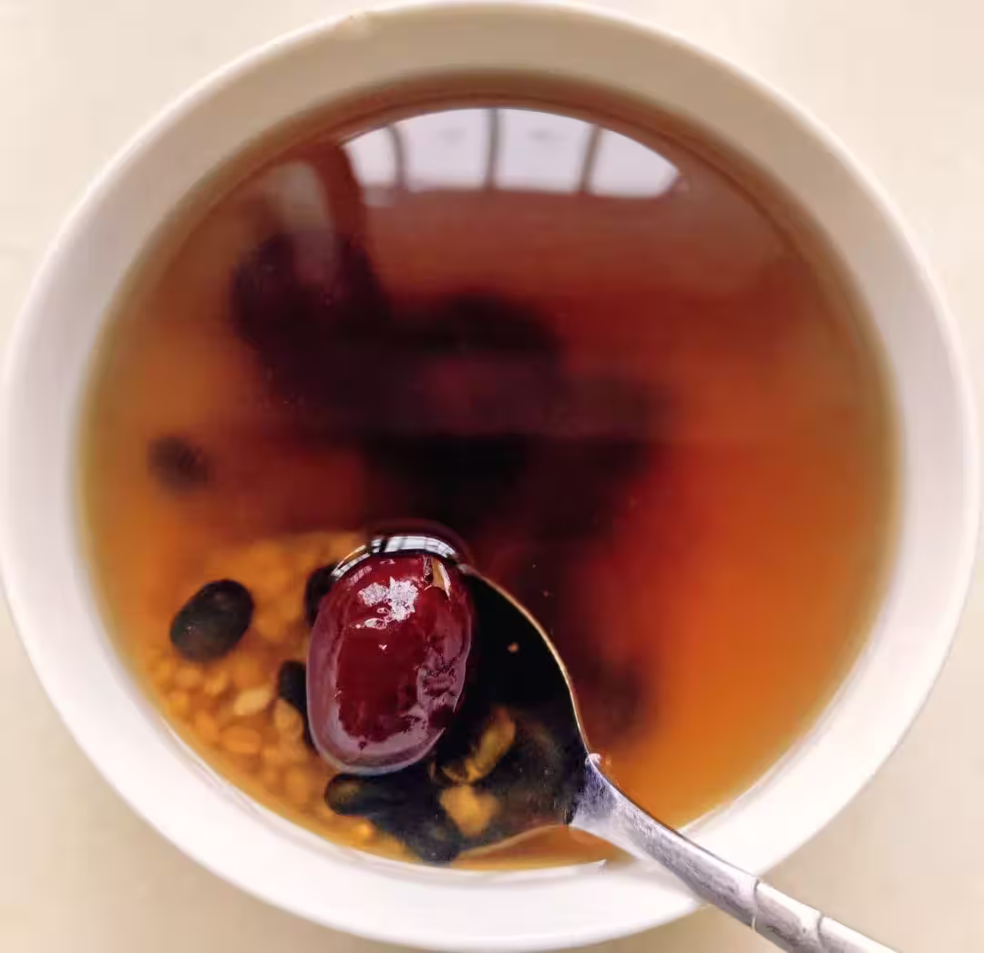 這是羅大倫老師也推薦的止汗方,浮小麥像守門人,專門把毛孔關緊止汗;黑豆補元氣、強體質,加了蓮子和紅棗,煮出來有淡淡的麥香,甜甜的,孩子不抗拒。
