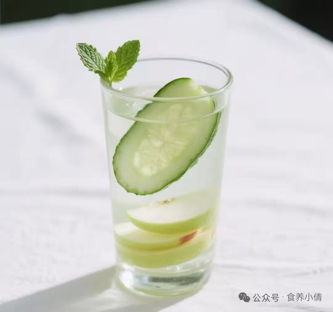 做法:將蘋果片、黃瓜片、薄荷葉(稍微拍一下釋放香氣)、檸檬片放入大的涼水壺或玻璃罐中。倒入常溫或涼白開,蓋好蓋子,放入冰箱冷藏浸泡至少4小時,最好過夜。