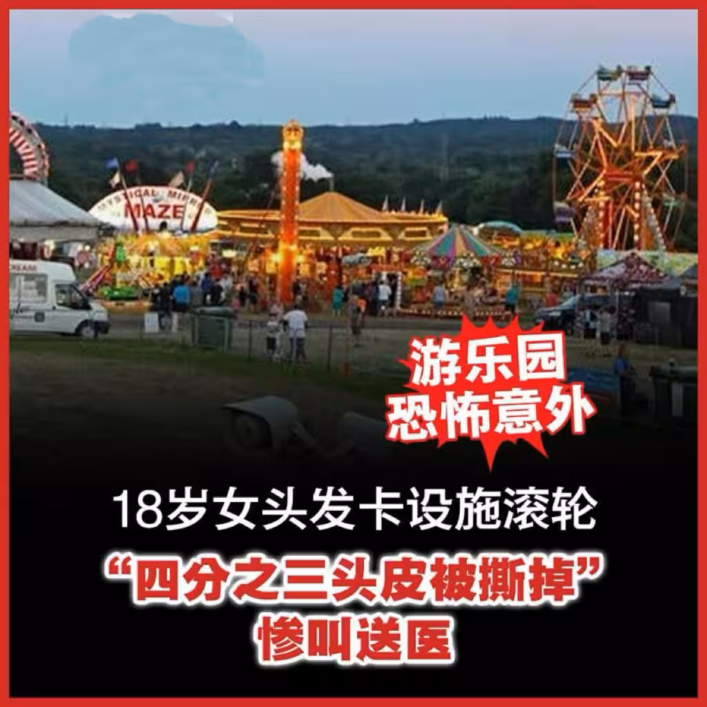 18歲女頭髮意外卡遊樂設施 「四分之三頭皮被撕掉」爆血慘叫