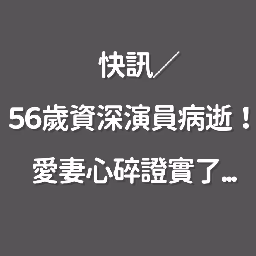 快訊/56歲資深演員病逝!愛妻心碎證實了!
