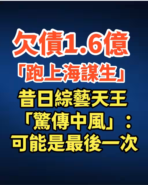 欠債1.6億「跑上海謀生」昔日綜藝天王「驚傳中風」:可能是最後一次...