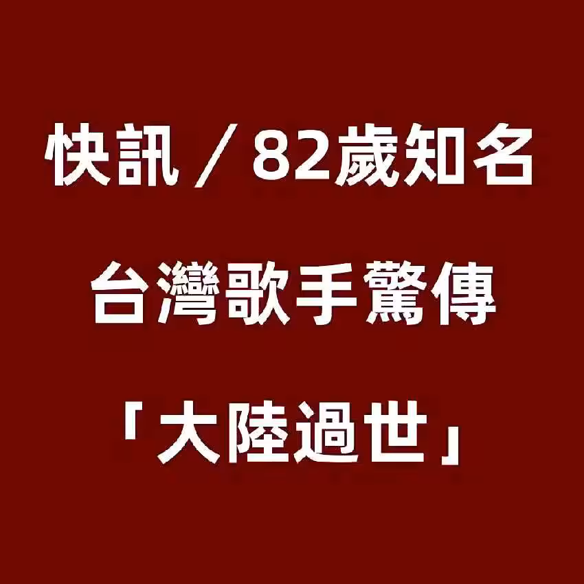 快訊/82歲知名台灣歌手「驚傳大陸過世」兒悲痛證實