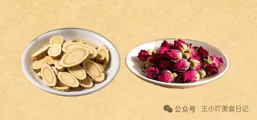 功效:玫瑰花有美容養顏、調節內分泌的作用,和黃芪搭配在一起,不僅可以改善氣色,讓皮膚慢慢變得白皙透亮,還能調節情緒,讓你每天都心情美美的。
