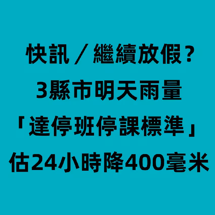 快訊/繼續放假?3縣市明天雨量「達停班停課標準...」 估24小時降400毫米