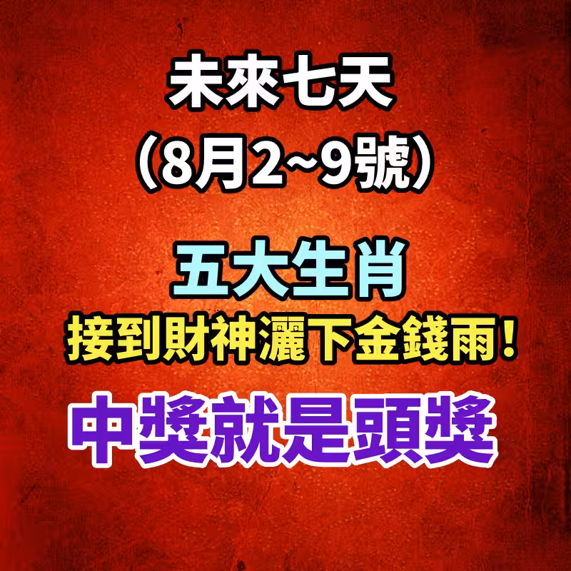 未來七天(8月2~9號)接到財神灑下金錢雨!中獎就是頭獎的生肖