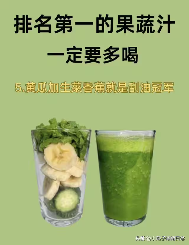 一根黃瓜+2片生菜+半根香蕉,加200ml水榨30秒,清爽不澀口!