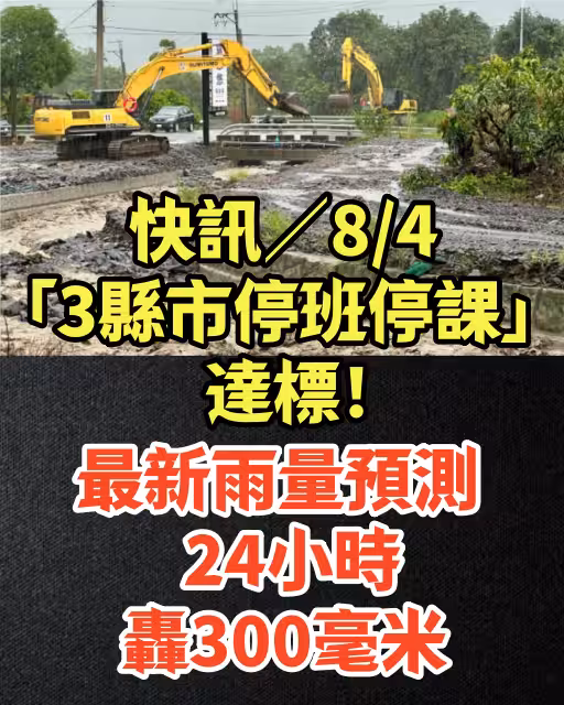 快訊/8/4「3縣市停班停課」達標!最新雨量預測,24小時轟300毫米!
