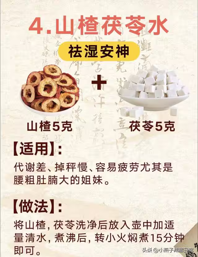食材:山楂5g + 茯苓5g(茯苓提前碾成粉,更出味)