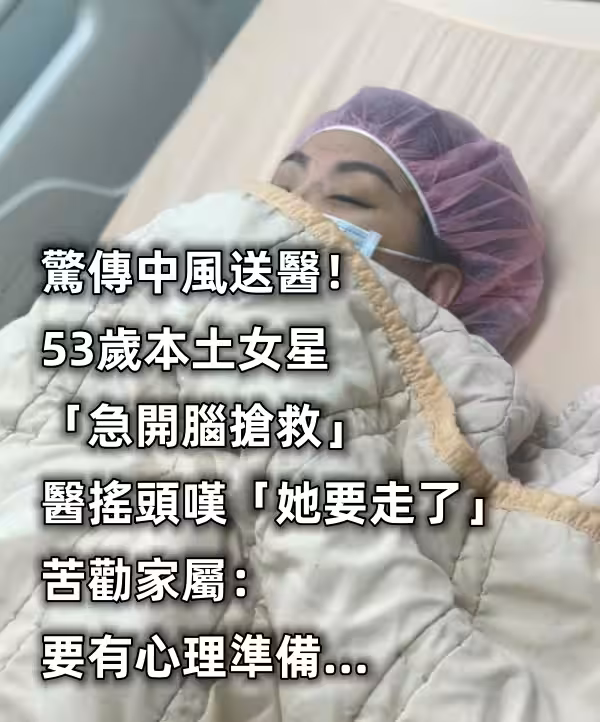 驚傳中風送醫!53歲本土女星「急開腦搶救」, 醫搖頭嘆「她要走了」苦勸家屬:要有心理準備