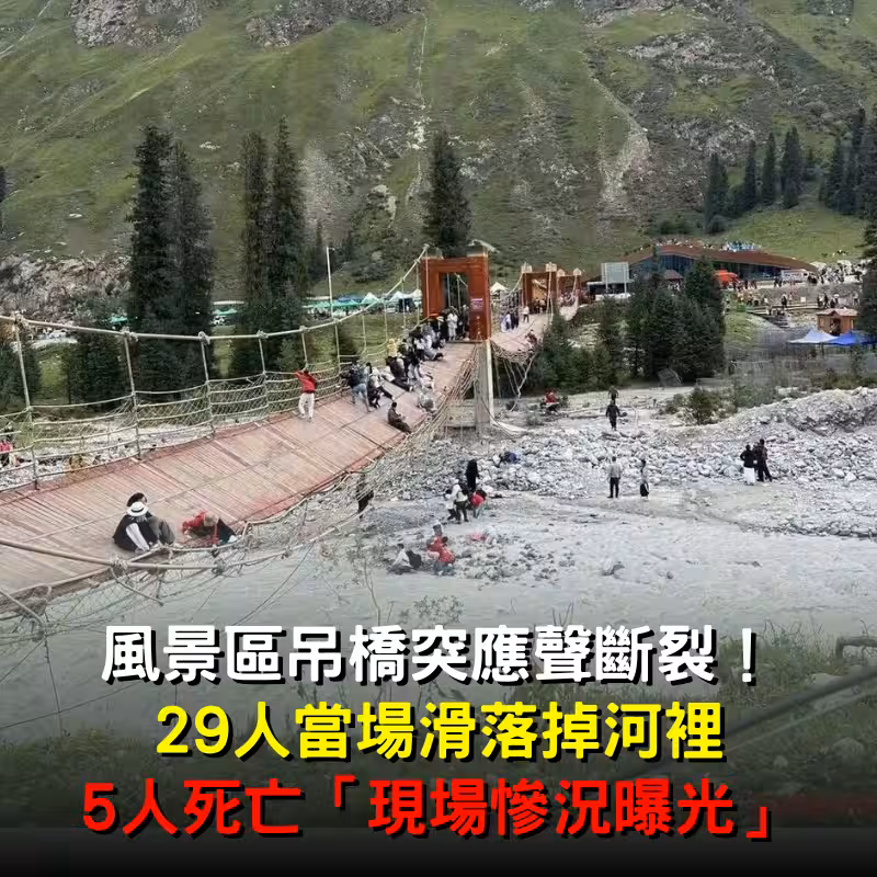 快訊/風景區吊橋突應聲斷裂!29人當場滑落掉河裡「現場慘況曝光」