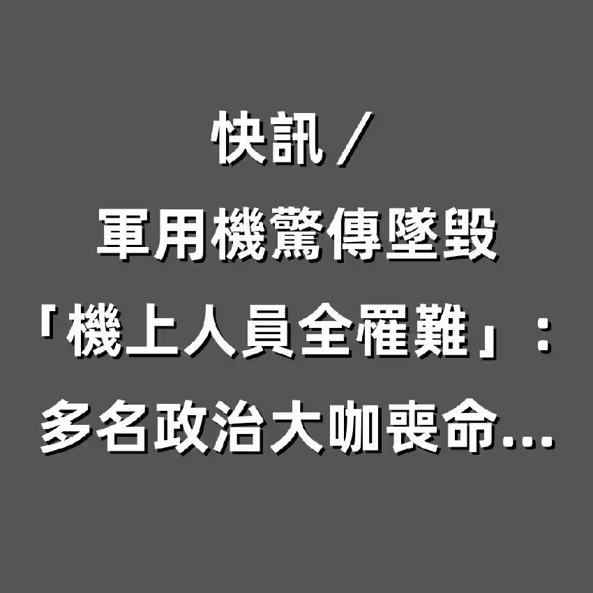 快訊/軍用機驚傳墜毀「機上人員全罹難」:多名政治大咖喪命...