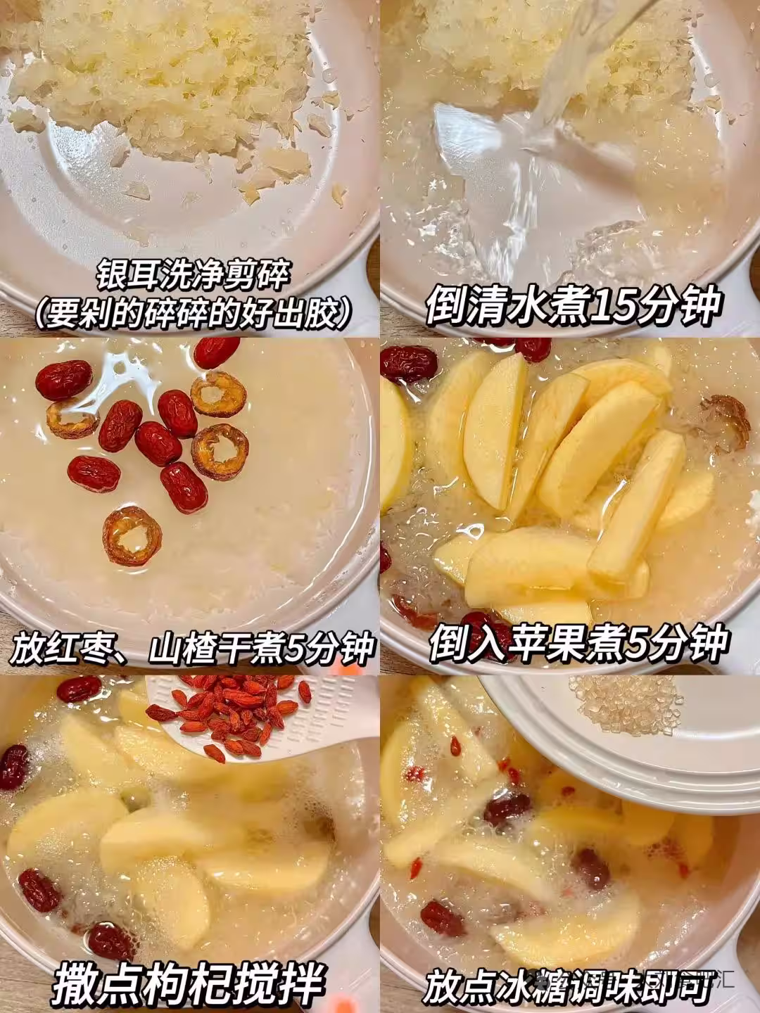 1. 將銀耳提前泡發,洗凈後剪碎,剪得碎一點更易出膠