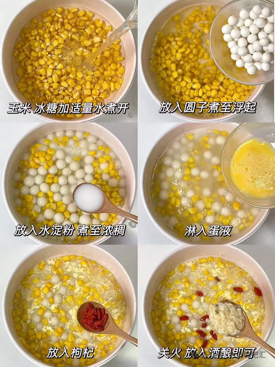 5. 最後放入枸杞和酒釀,關火即可。