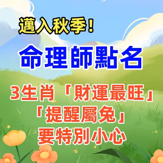邁入秋季!命理師點名3生肖「財運最旺」「提醒屬兔」要特別小心