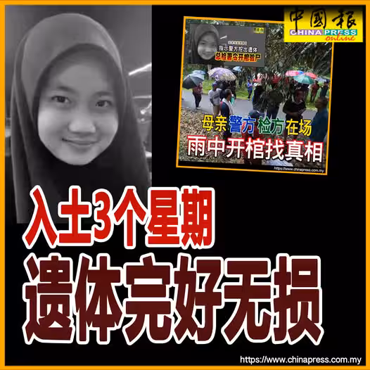 (實必丹10日訊)「13歲少女扎拉凱麗娜疑遭霸凌墜樓亡」案;死者雖已入土3個星期,但遺體依然完好無損!