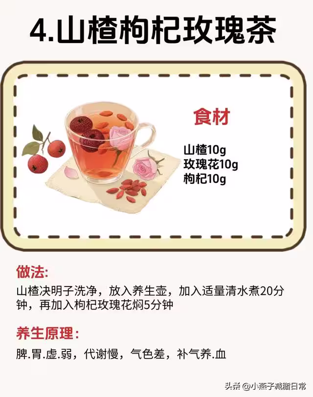做法:山楂洗乾淨放進養生壺,加適量清水煮20分鐘,再放枸杞和玫瑰花燜5分鐘。