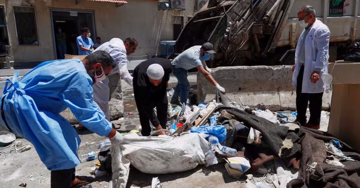 敘利亞德魯茲族占多數的蘇韋達鎮爆發宗派衝突後,工人正在清理當地的國家醫院。(圖/美聯社)