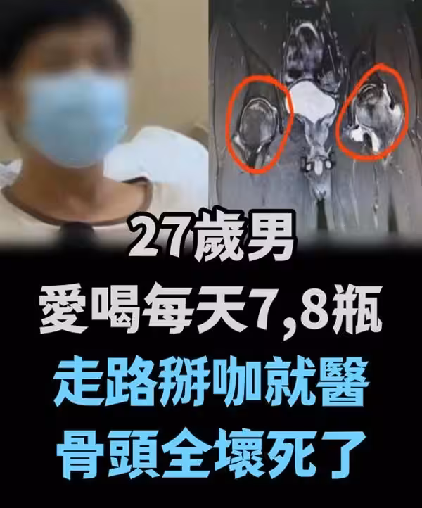 27歲男愛喝每天7、8瓶 走路掰咖就醫:骨頭全壞死了‼️