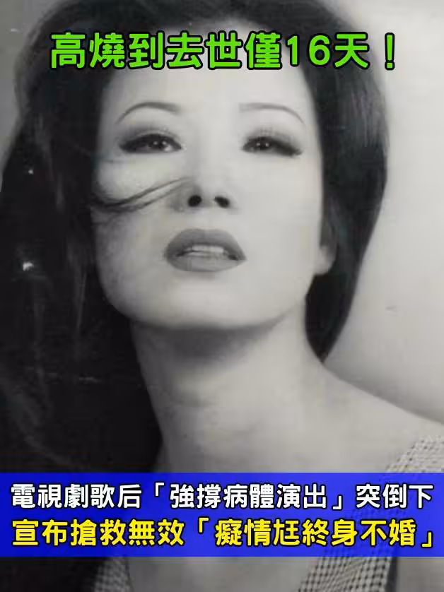 高燒到去世僅16天!電視劇歌后「強撐病體演出」突倒下 搶救無效「痴情尪終身不婚」