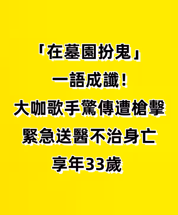 「在墓園扮鬼」一語成讖!大咖歌手驚傳遭槍擊...緊急送醫不治身亡 享年33歲