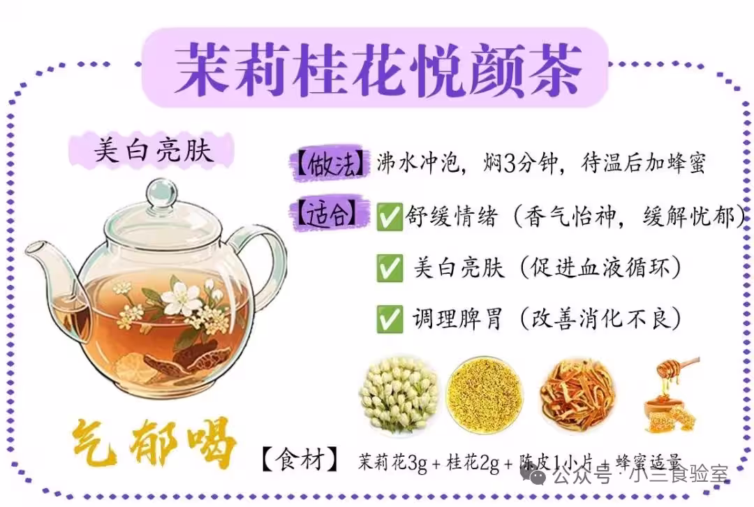🍵 食材還原:茉莉花3g + 桂花2g + 陳皮1小片 + 蜂蜜適量🍯
