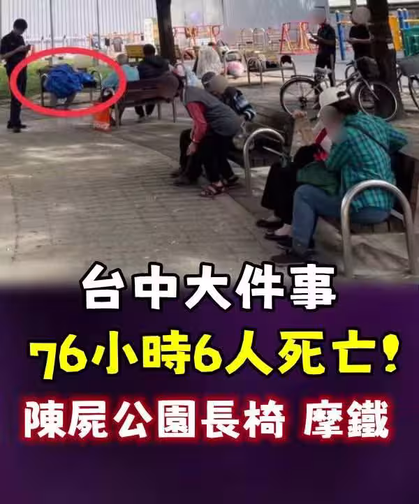 快訊/台中大件事,76小時6人死亡!陳屍公園長椅、摩鐵.