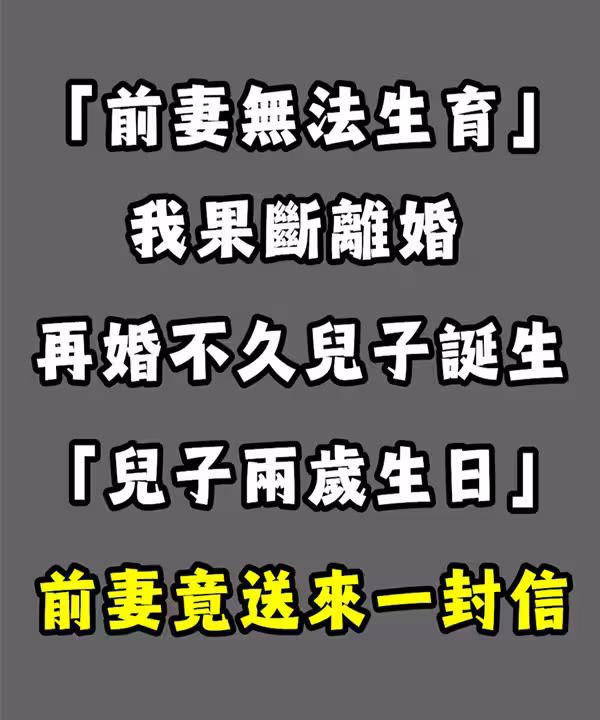 「前妻無法生育」我果斷離婚!再婚後「兒子兩歲生日」前妻竟送來一封信