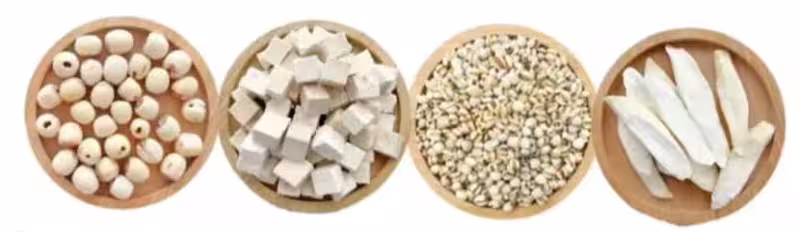 食材清單:蓮子10克、茯苓10克、山藥10克、薏米8克