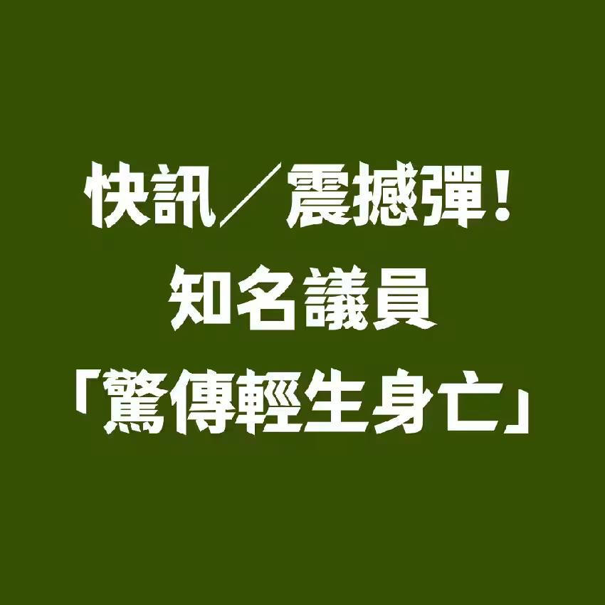 快訊/震撼彈!知名議員「驚傳輕生身亡」