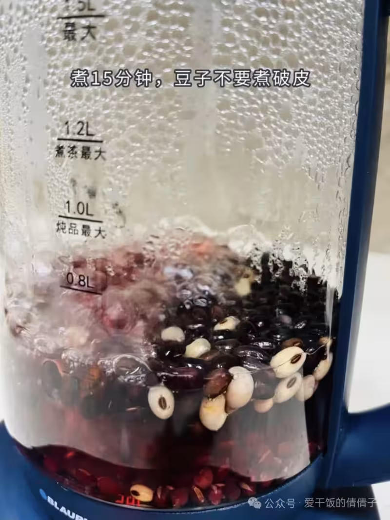 【做法】 1️⃣ 三種豆子混合浸泡4小時; 2️⃣ 烏梅快速沖洗; 3️⃣ 食材入鍋加冷水; 4️⃣ 小火慢煮30分鐘。 💡倩倩提醒:豆子不要煮破皮,影響口感。