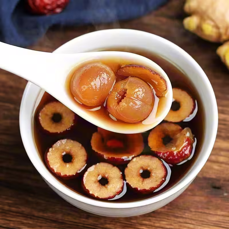 【功效】桂圓補心脾、益氣血,紅棗健脾養胃,生薑驅寒暖身,適合夏季空調房久待或體質虛寒者,尤其對女性經期不適有緩解作用。