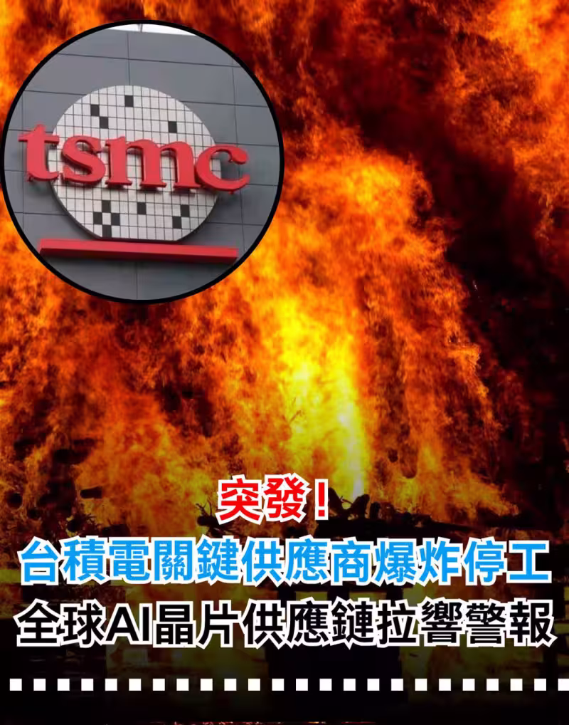 突發!台積電關鍵供應商爆炸停工,全球AI晶片供應鏈拉響警報