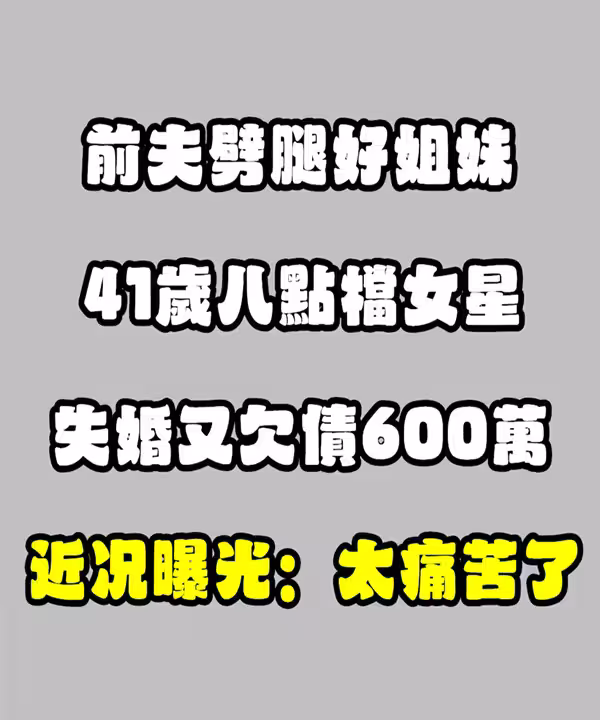 前夫劈腿好姐妹!41歲八點檔女星「失婚又欠債600萬」近況曝光:太痛苦了...