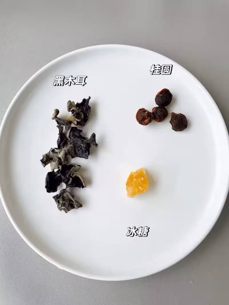 黑木耳提前泡軟,和桂圓、適量冰糖一起放進清水裡,慢慢煮到湯汁變濃。黑木耳煮後柔軟滑口,桂圓甜味浸入水中,加一點冰糖,喝起來順口不膩。