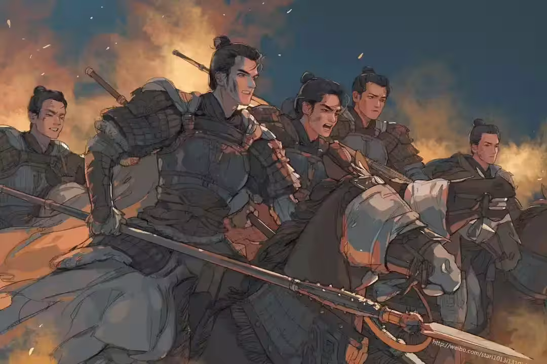 這幅畫面是何等地豪邁雄壯!將軍率領鐵騎沖向敵軍,馬兒飛一般地向前衝鋒,弓弦雷鳴,萬箭齊發敵軍紛紛落馬、狼狽潰逃,一瞬間便結束了戰鬥。