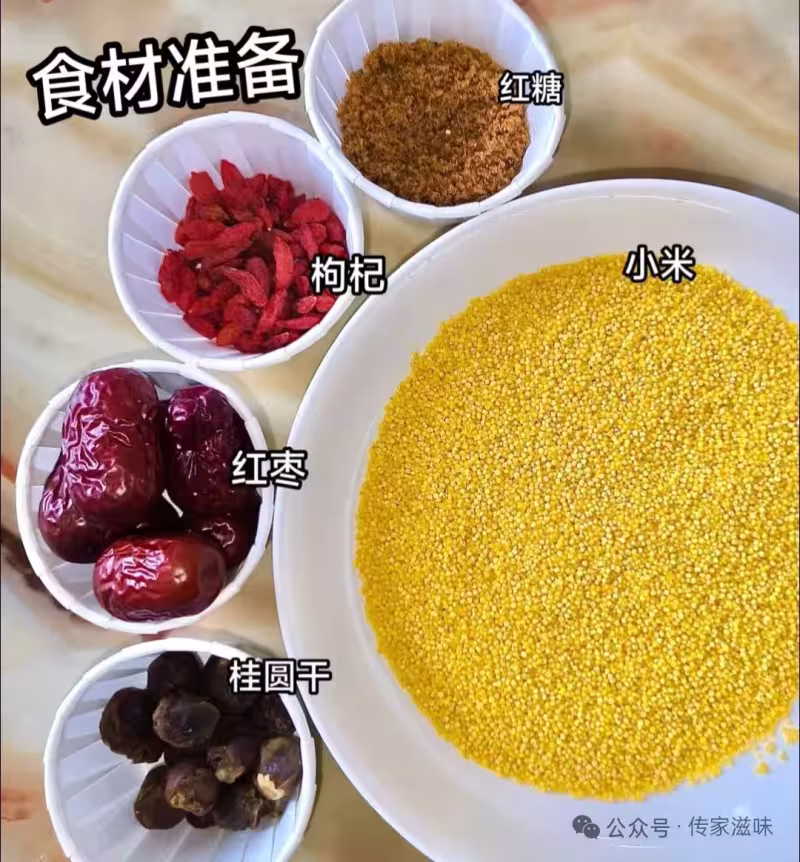 1.小米淘洗乾淨,加500ml清水泡10分鐘(更容易煮軟); 2.砂鍋大火煮開後轉小火,放紅棗、桂圓,保持微沸狀態煮25分鐘; 3.最後加紅糖攪化(血糖高的姐妹可以不放),關火燜5分鐘更香濃。