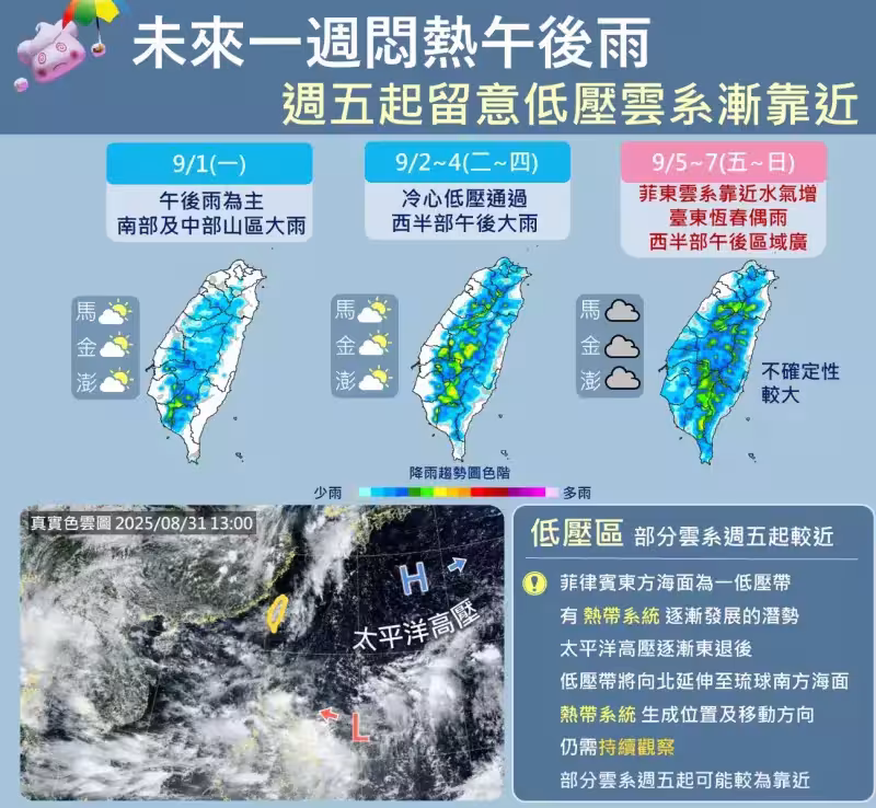 一周天氣/開學日下大雨!氣象署:颱風不排除生成 這3天雨最多