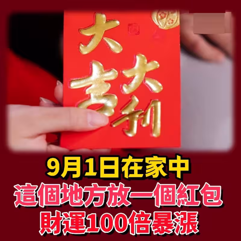 風水師偷偷透露:9月1日在家中這個地方,放一個紅包,竟能讓財運100倍暴漲,好運一路旺到年底!