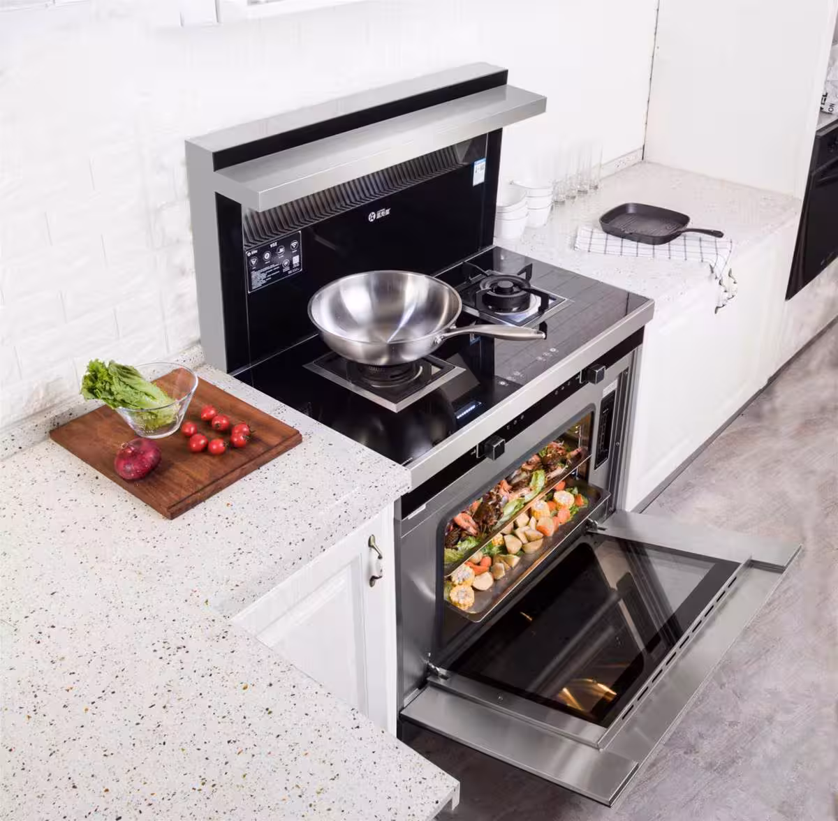 集成灶是比較小巧的家電,基本上不占用什麼空間,廚房上部的空間可以節省出來安裝吊櫃,適合那些廚房面積不大的家庭。