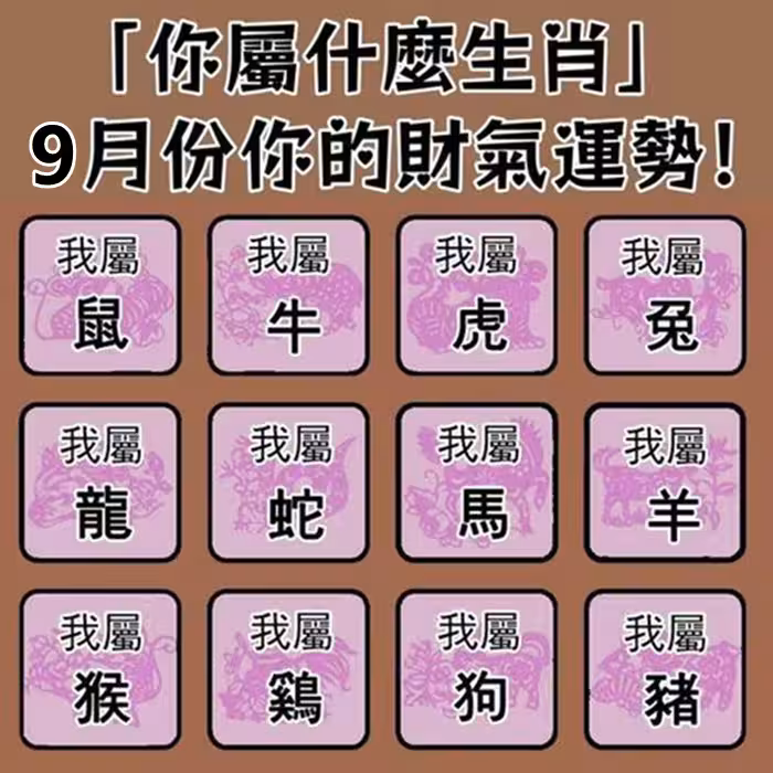 「你屬什麼生肖」9月份你的財氣運勢!