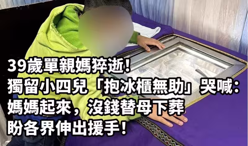 39歲單親媽猝逝!獨留小四兒「抱冰櫃無助」哭喊:媽媽起來,「沒錢替母下葬」盼各界伸出援手!