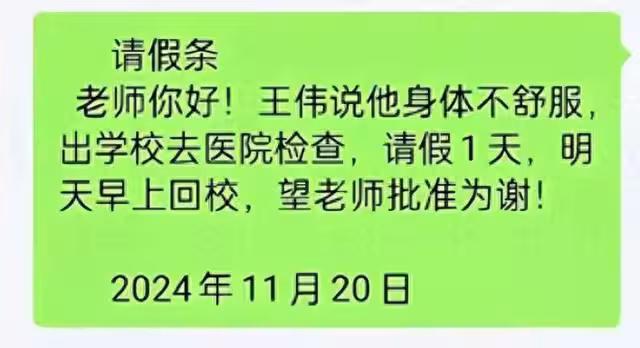 那天,他告訴母親自己身體不舒服,請母親幫忙和老師請假,母親沒有多想,便給老師傳了訊息。