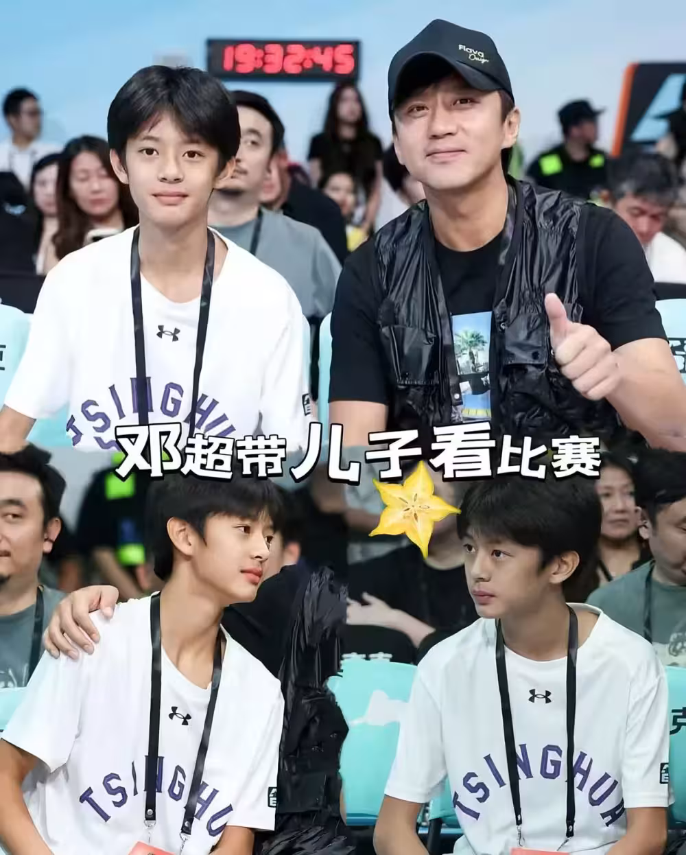 最近,14歲的等等與爸爸鄧超一起看球,一身白球衣的等等看起來清清爽爽,已經初具小帥哥雛形。