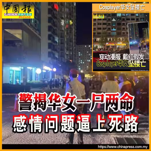 (檳城4日訊)」Cosplayer華婦墜樓身亡案」,警方調查後驚揭,原來是一屍兩命!