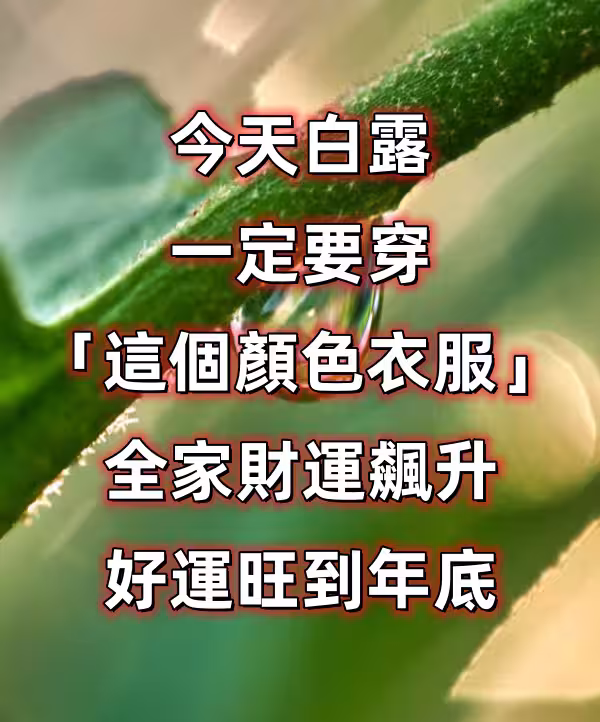 今天白露,一定要穿「這個顏色的衣服」全家財運飆升,好運旺到年底...