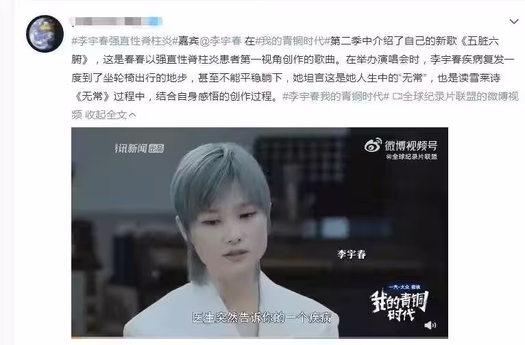 2021年,她被定位為「僵直性脊椎炎」——一種稱為「不死」癌症的慢性疾病。 雖然不會直接危及生命,但它會「凍結」人的脊柱,帶來持續性疼痛和功能性損傷,甚至可能讓人慢慢失去基本的生活自理能力。