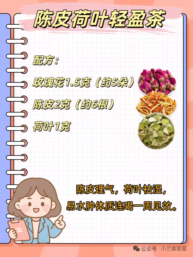 陳皮理氣,荷葉祛濕,易水腫體質連喝一周見效。早上喝一杯告別泡泡眼,久坐水腫的上班族午後小腿脹如蘿蔔時熱飲,排水效果翻倍。