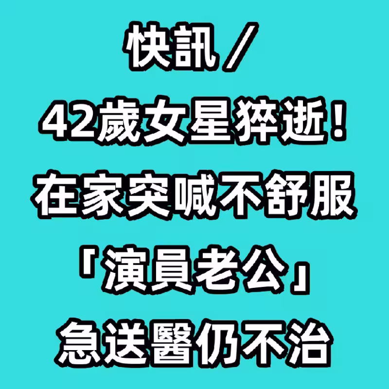 快訊/42歲女星猝逝! 在家突喊不舒服「演員老公急送醫」仍不治!