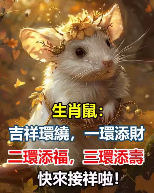 生肖鼠:吉祥環繞,一環添財,二環添福,三環添壽,快來接祥啦!