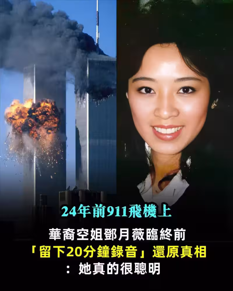 24年前911飛機上, 華裔空姐鄧月薇臨終前「留下20分鐘錄音」還原真相:她真的很聰明